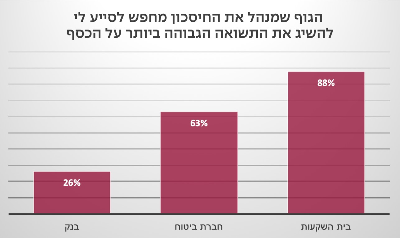 מנגד כאשר מדובר בבית ההשקעות או בחברת ביטוח 88% ו- 68% בהתאמה הסכימו שהם מנסים לסייע להם להשיג את התשואה הגבוהה ביותר: